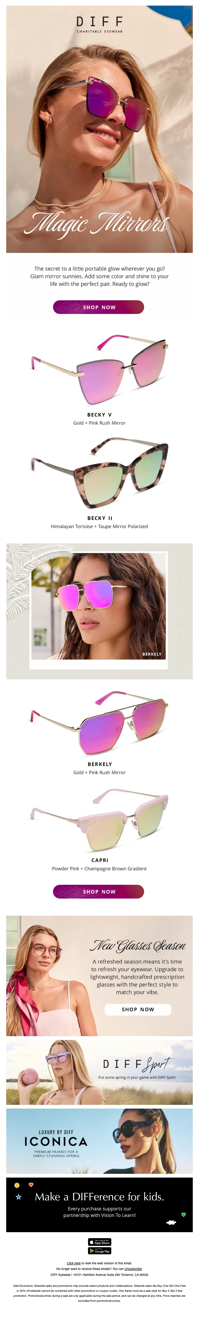 Treat yourself to stunning sunglasses with DIFF's exciting Buy 2, Get 3 Free offer! No coupon codes needed. Dive into our collection of trendy shades and elevate your style effortlessly.