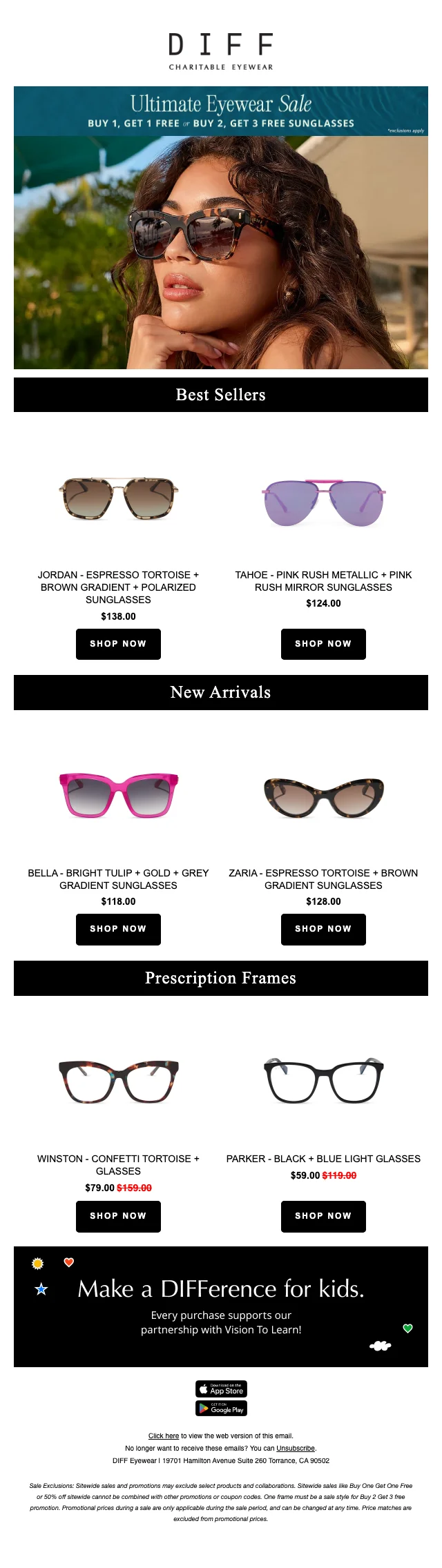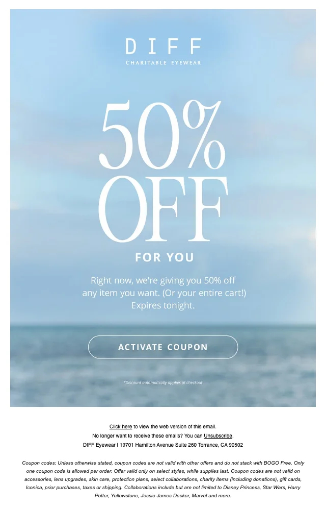 Diff Eyewear 50% off any item tonight — save on frames now