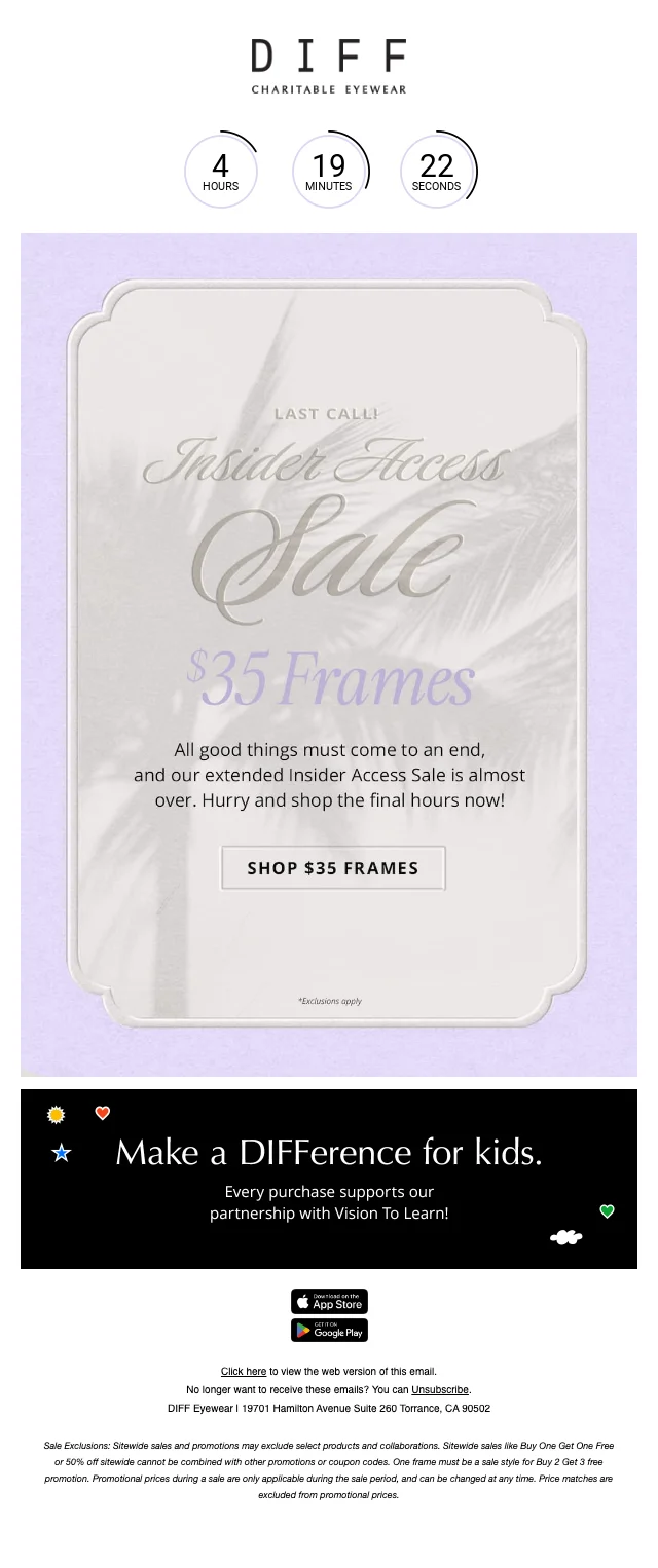 DIFF Eyewear $35 frames insider access sale ending soon