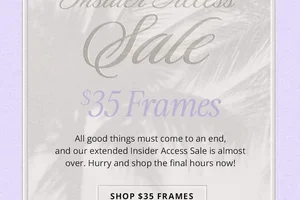 Shop select eyeglass frames for just $35 during the Insider Access sale, delivering steep savings on curated styles. Final hours to grab discounted frames — exclusions apply and promotional prices are valid only during the sale period.